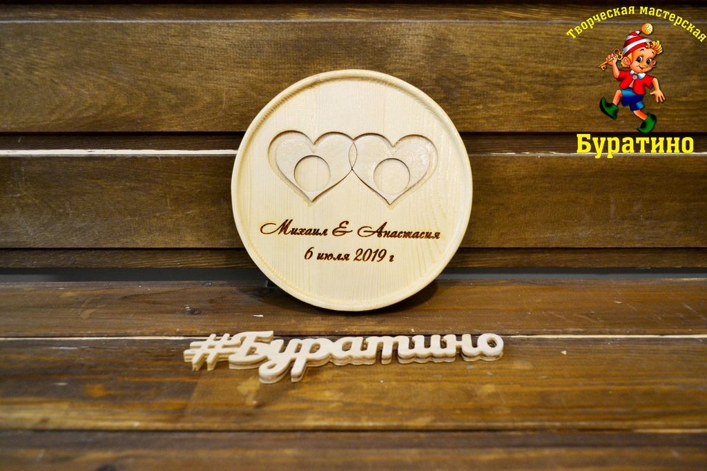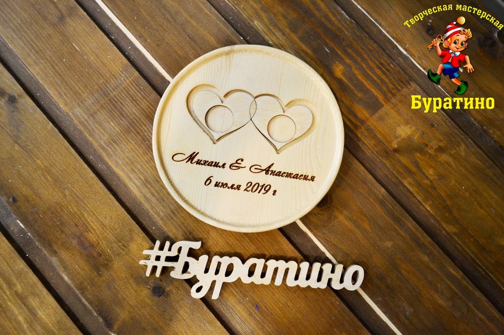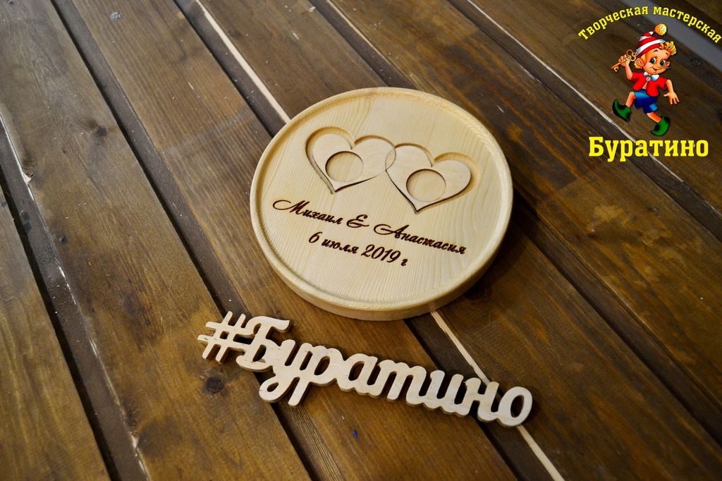 Тарелочка для колец с гравировкой из цельного дерева
